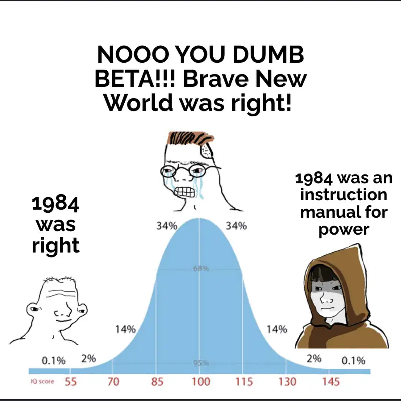 A powerful demonstration of pacing and leading in favor of Aldous Huxley's Brave New World.